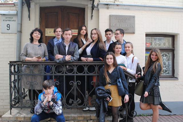05 квітня 2017 року учні 9-х класів на чолі з заступником директора з виховної роботи Чистяк О.І., вчителем української мови та літератури Сухарєвою І.А., та завідуючою інформаційним центром Чумак Т.Л. відвідали Київський музей О. С. Пушкіна, де ознайомились з колекцією музею, яка складається з експонатів переважно першої половини XIX ст. і налічує близько шести тисяч одиниць, з яких в експозиції представлено більше 1200. Учні відчули атмосферу пушкінської доби, яку відтворює внутрішній простір Музею — доби російського класицизму початку XIX століття. Діти побачити меблі, тканини, порцеляну, скло, бісерні вишивки та інші речі, які складали звичний предметний світ російського дворянства того часу. Найбільше захоплення викликало— книжкове зібрання та зібрання тиражної графіки кінця XVIII — початку XIX століття та екземпляр журналу «Современник» (1836, том 2) з цензурним дозволом за підписом цензора А. Крилова, яка є єдиною в музеях України пушкінською меморією.