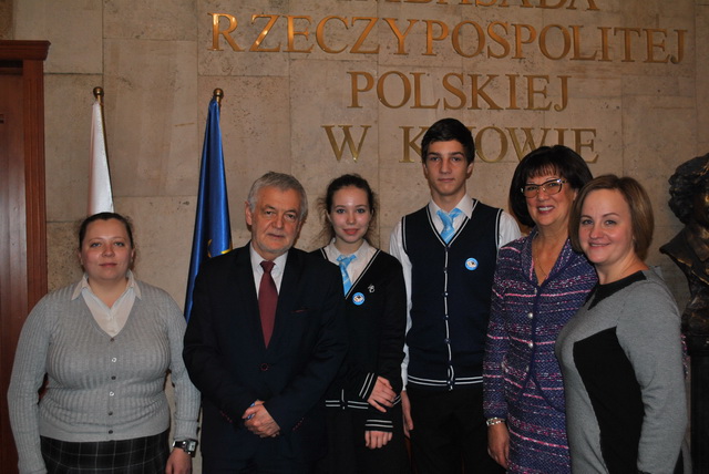 Цього року в Консульстві нас зустріла Пані Агнєшка Рончка (консул з питань полонії) і була приємно вражена привітанням учнів 10-А класу – Гурської Катерини та Шадурського Олександра. А в Посольстві Республіки Польща наша делегація на чолі з директором гімназії №48 - Маріанною Іванівною Босенко мала честь зустрітися з Надзвичайним і Повноважним Послом Яном Пєклом.