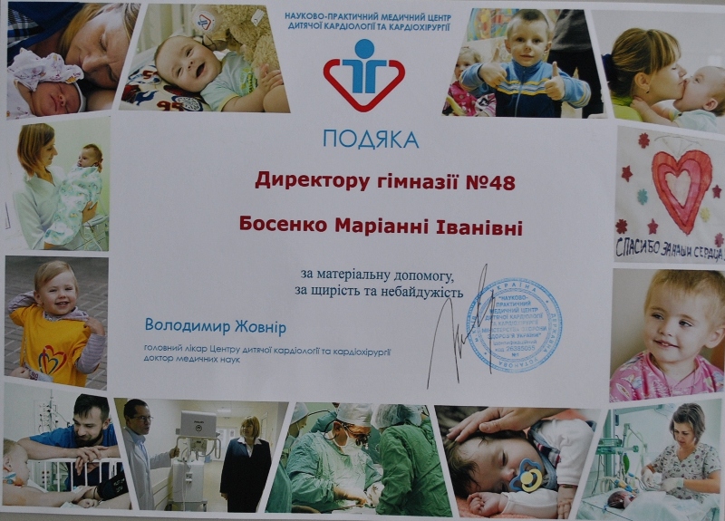 Адміністрація та батьківський комітет гімназії №48 висловлює щиру вдячність всій гімназійній родині - учням, батькам та вчителям за участь у Благодійній акції «Раді радість дарувати»