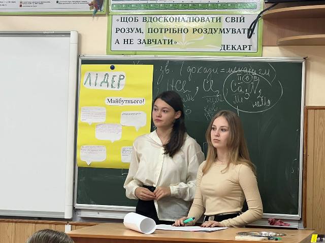 08 листопада 2023 року члени ради самоврядування на чолі з магістром Любою Танчак провели інтерактивне заняття "Лідер майбутнього" для учнів 7-А класу.