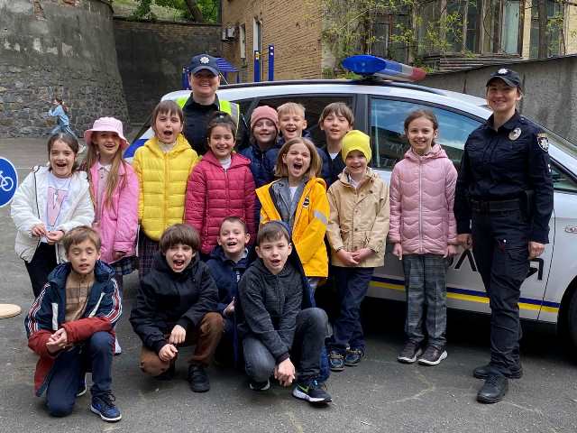 Напередодні Тижня безпеки дорожнього руху 10 травня 2023 року для учнів 1-4-х класів гімназії №48 інспектори відділу звʼязків із громадськістю управління патрульної поліції в місті Києві Онищук Світлана Михайлівна та Діхтярь Олександра Валеріївна провели інтерактивні заняття. В ігровій формі познайомили малечу з правилами дорожнього руху й навчили переходити дорогу безпечно.
