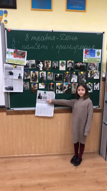 На передодні Дня пам‘яті та примирення у 2-А класі, класовод Горбаньова І.В. пройшов тематичний урок.