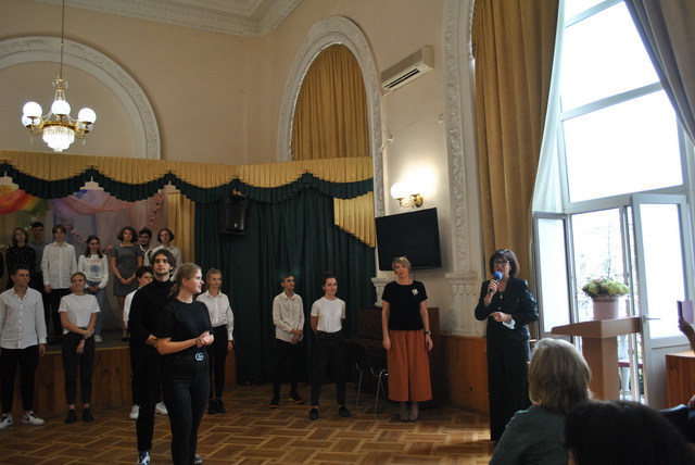 Цього святкового ранку члени ради самоврядування учнів 8-10 класів на чолі з магістром, учнем 9–Б класу Любчичем Олександром, сердечно вітали вчителів з професійний святом власноруч виготовленими побажаннями.
