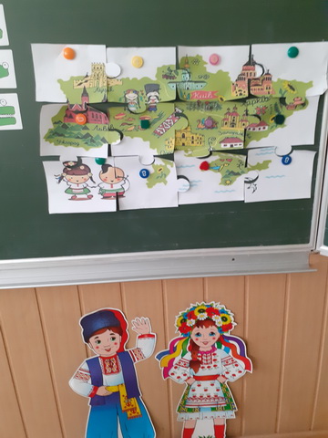 Учні 1-А класу разом з класоводом Палійчук Л.М. на уроці «Я досліджую світ» виконали творче завдання - склали пазл з картою України.