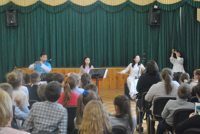 10 грудня 2019 року гімназисти 4-5 класів мали змогу доторкнутися до китайської культури. До нас в гості завітав Музичний центр Конфуція при Національній музичній академії України імені П.І. Чайковського. Викладачі центру Лі Цзенгуан, Гу Юлей, Лян Ванпін зіграли музичні твори різних регіонів Китаю, продемонструвавши різноманітність музики своєї країни. Після концерту діти мали змогу пограти на музичних інструментах, а саме Чжуді – китайській флейті з 8 отворами, Янцінь – китайському струнному музичному інструменті (китайські цимбали), Ерху- струнному музичному інструменті, який має лише дві струни. Було дуже цікаво!