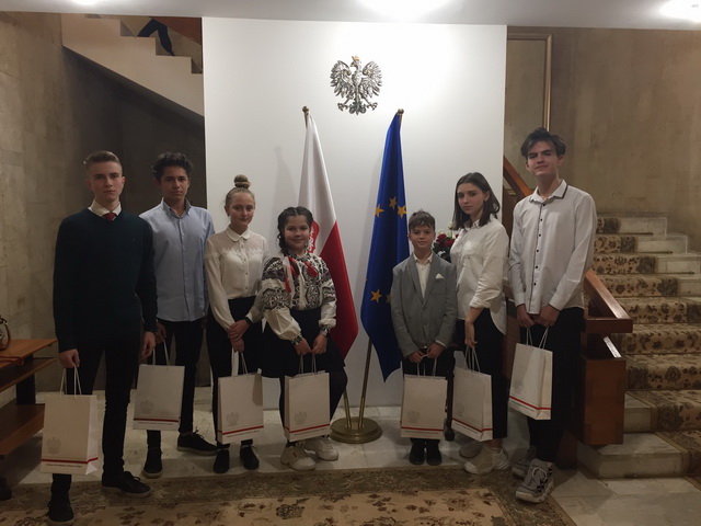 12 листопада 2019 року гімназисти 5-9 класів та вчителі польської мови Нагорнюк І.Г. Та Дудка І.П. за багаторічною традицією відвідали Посольство Польської Республіки та Консульський Відділ, де привітали пані Еву Матушек-Загату ( керівника відділу науково-освітньої співпраці Посольства Польщі), пані Дороту Дмуховську ( керівника консульського відділу) та пана Яцека Гоцловсьокого( консула Польщі) та всіх поляків зі 101 річницею Незалежності Польщі! Польська сторона була дуже зворушена привітанням, тому не обійшлося без подарунків для гімназистів.