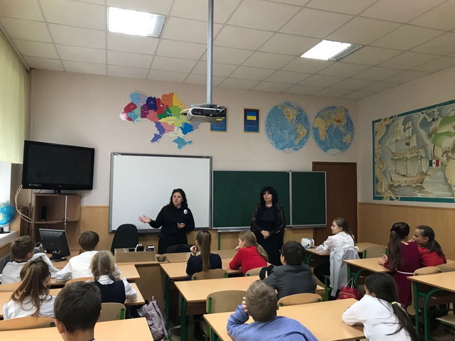 В рамках декади «Викресли булінг зі шкільного життя» 04 жовтня 2019 року для гімназистів 5-Б класу за участю заступника директора з виховної роботи та класного керівника – Чистяк О.І. - було проведено інтерактивне заняття за проектом «Школа і поліція» старшим лейтенантом патрульної поліції в місті Києві – Грицюк Русланою Миколаївною. Під час заняття «Протидія булінгу в дитячому середовищі. Розв’язання конфліктів мирним шляхом» діти мали можливість в процесі дискусії обговорити нагальні питання попередження та протидії насильству та цькуванню в дитячому середовищі.