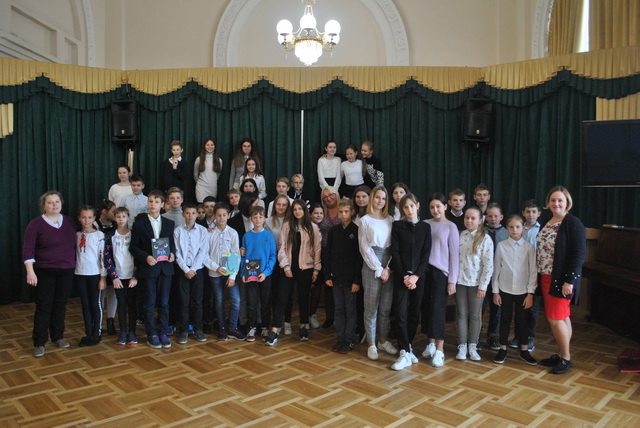Гімназисти 5-8 класів, які вивчають польську мову, мали честь зустрітися з "Послом Польської Мови - 2019", письменницею та мовознавцем Агнєшкою Фрончек та з керівником науково-освітнього відділу Республіки Польща Евою Матушек-Загатою. Під час зустрічі пані Агнєшка познайомила присутніх зі своїми віршами, поділилася секретами польської мови. Звичайно ж не обійшлося й без подарунків: найактивніші учасники отримали від письменниці збірники віршів з автографом.