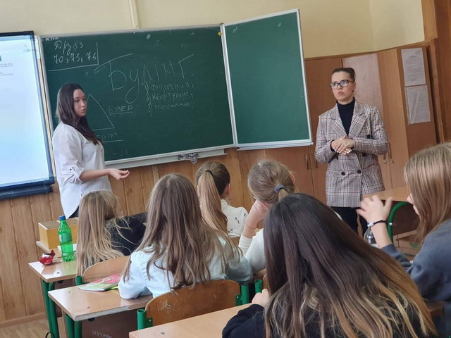 В рамках тематичного тижня «Разом проти булінгу» 19 вересня 2019 року для гімназистів 6-х класів було проведено інтерактивне заняття «Викресли булінг зі шкільного життя» за участі студентів IV курсу Київського Університету ім. Б. Грінченка.